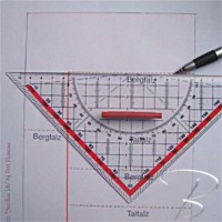 das Lineal (oder Geodreieck) über die Prägelinien und falze